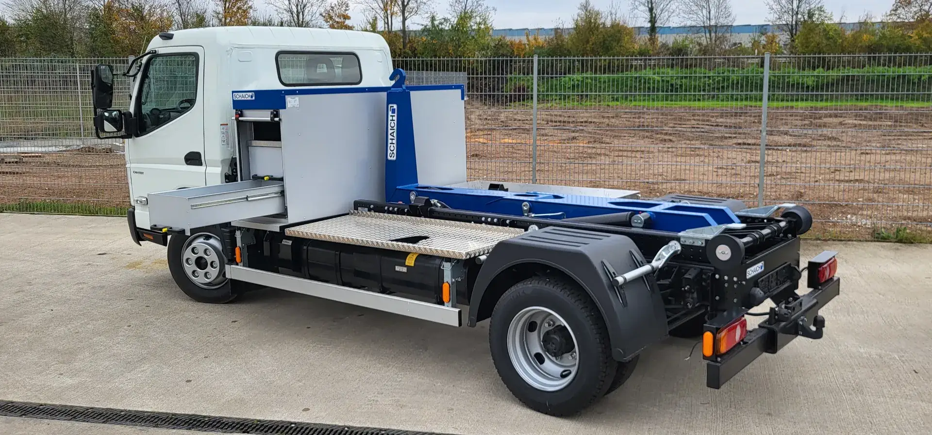Das Schaich Abrollkipper für kleine LKWs und Kommunalfahrzeuge wie zum Beispiel den Mitsubishi Fuso, den Lindner Unitrac, den Hako M41, Reform Boki & Muli, usw.